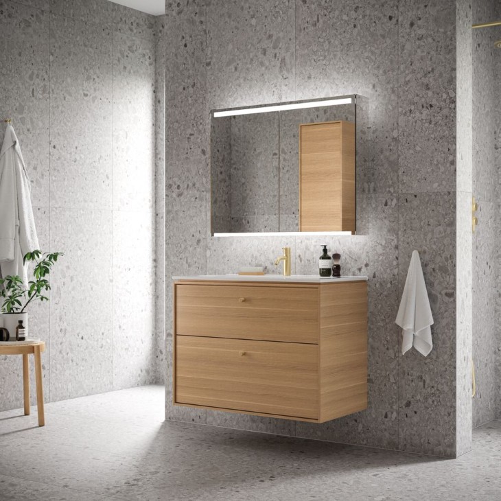 Sen vuoksi puisia kylpyhuonekalusteita valitessasi, on hyvä muistaa ero kylpyhuonekalusteiden, jotka ovat suorassa kosketuksessa kosteuden kanssa, kuten allaskaappisi, ja muiden kalusteiden välillä, jotka eivät altistu vedelle, kuten seinälle ripustetut hyllyt, peilinkehykset tai muut koristeet.